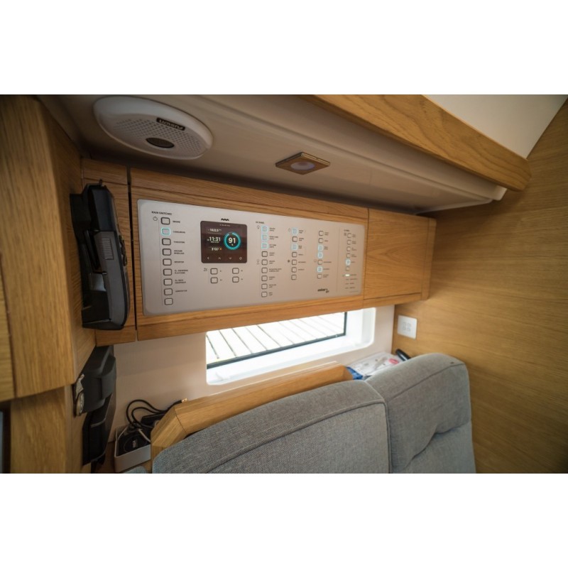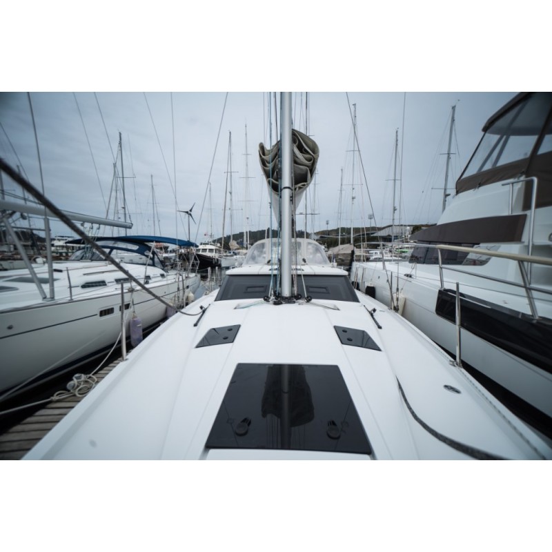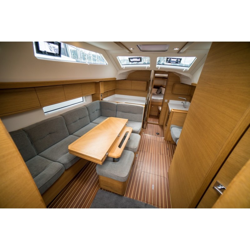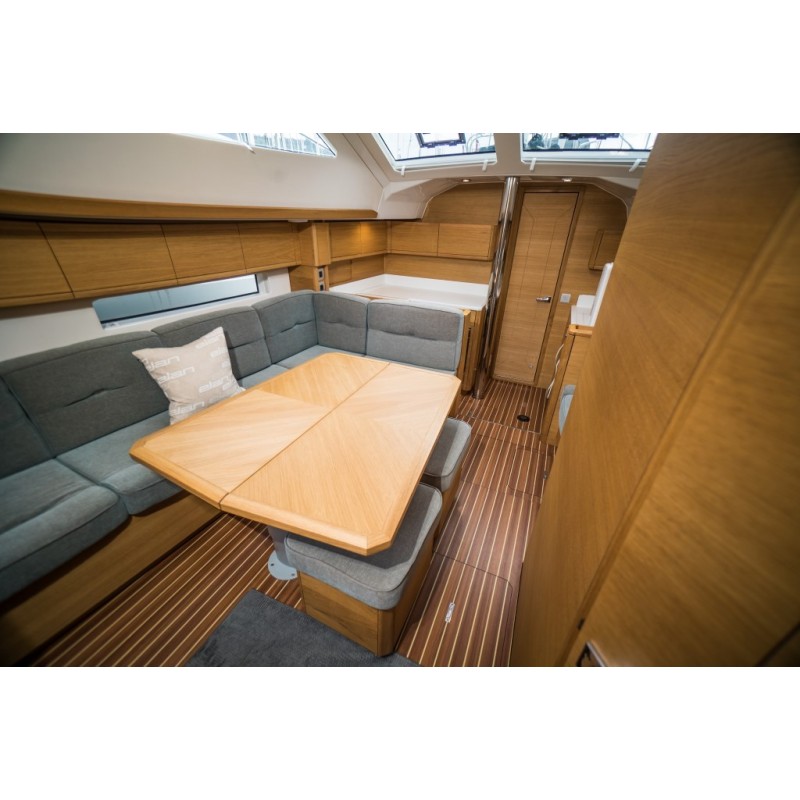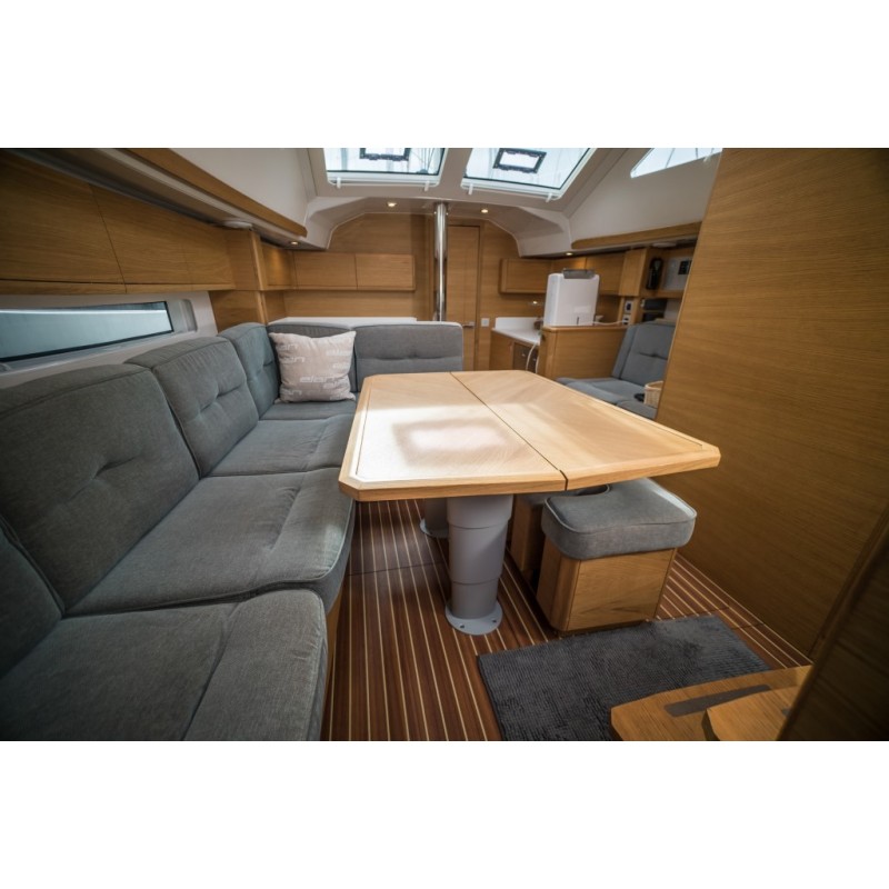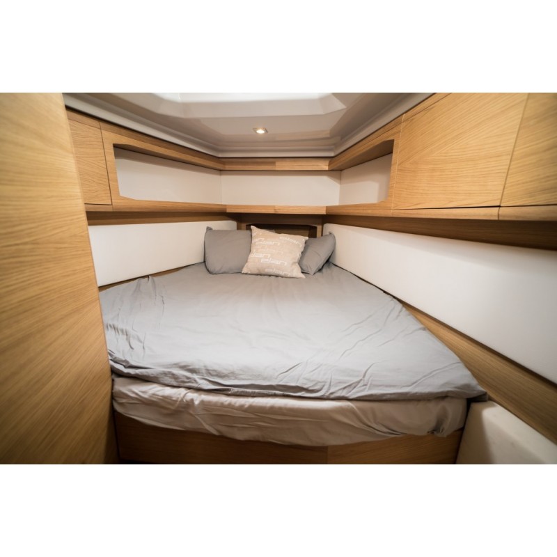 El barco cuenta con calefacción por aire en camarotes y salón principal, baños eléctricos, equipo de sonido Fusion en salón y cockpit, instrumental muy completo, velas OneSails de última generación con mayor full batten y foque enrollable con sables verticales. Además cuenta con parrilla a gas Magma y un completo equipo de ropa de cama, toallas, etc. En el exterior, cel generoso cockpit puede acomodar hasta 8 personas, protegidas con chubasquera y cockpit-tent con cierres laterales.