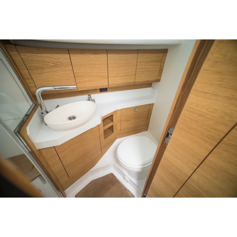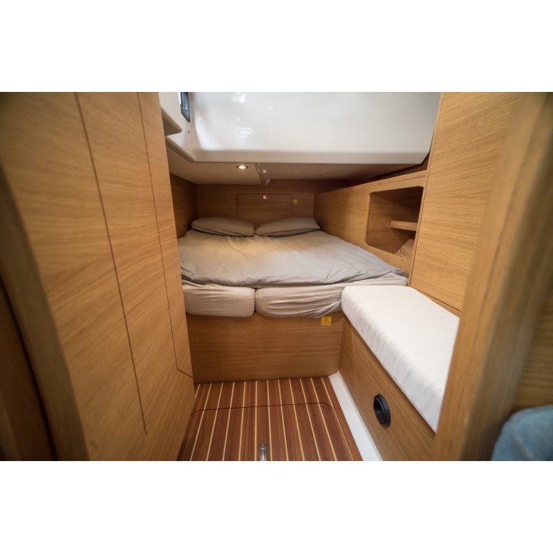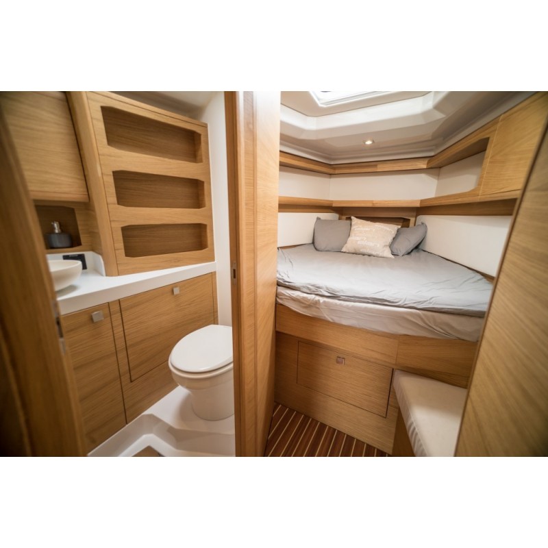 Este barco cuenta con 3 camarotes dobles y 2 baños, con una capacidad de 6 invitados. El baño de popa tiene una generosa ducha independiente.